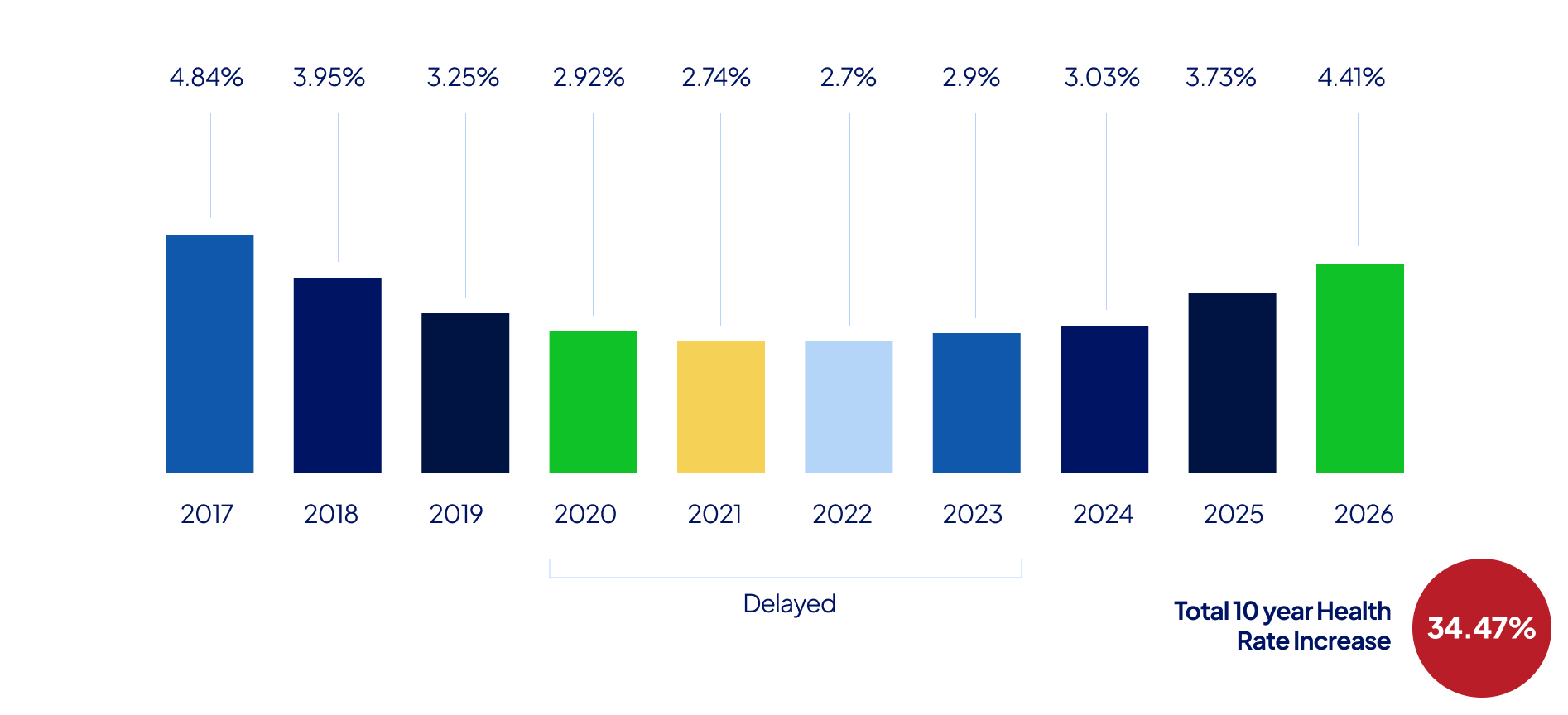 This graph shows the premium increase each year for the last decade: