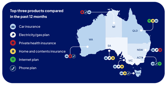 According to Compare the Market’s Household Budget Barometer car insurance, energy plans, and home and contents cover were the top three bills Aussies had compared over the past 12 months.