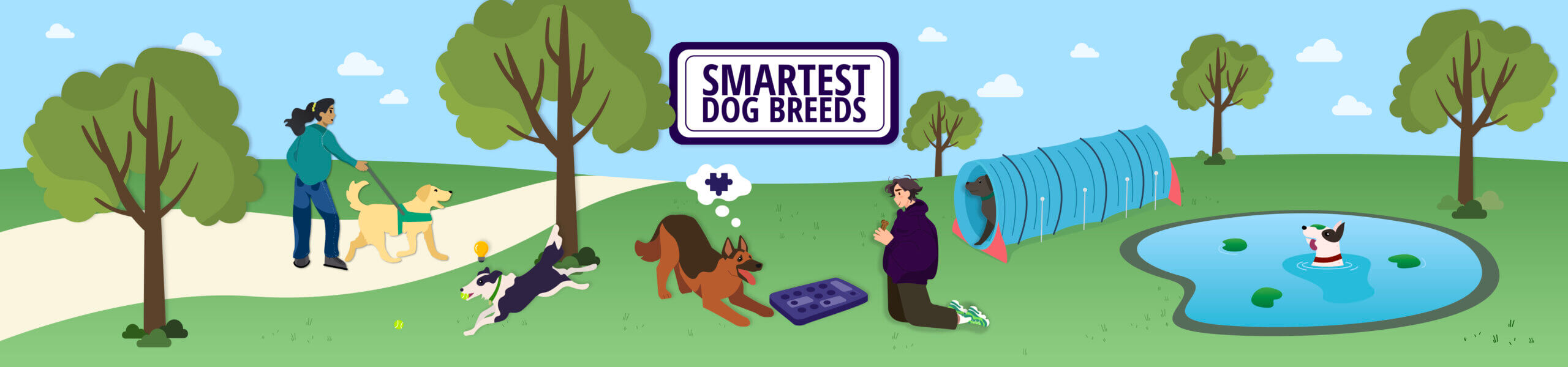 Some of our highest-ranked breeds, such as the Border Collie and Shetland Sheepdog, excel at solving problems. This gives them the independence they need to thrive without human intervention, while remaining obedient enough to follow orders.